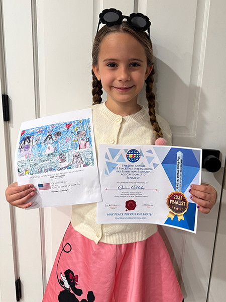Quinn Rebibo Peace Pals International Finalists 2025, Age 6, USA.