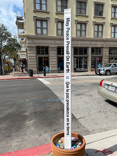 Members of the Galveston Rotary Club joined community leaders, residents, and partners from Galveston Regional Commerce to celebrate the installation of a Peace Pole at the corner of Post Office Street and 22nd Street in downtown Galveston.
