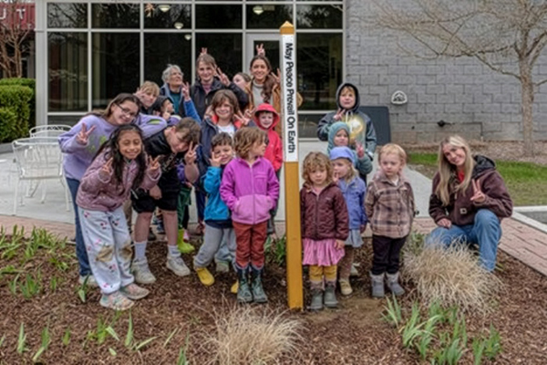 Great Barrington — In recognition of Earth Day and a shared commitment to fostering unity and compassion, Berkshire South Regional Community Center installed a Peace Pole on its grounds during a special ceremony with children from its childcare programs. The installation was made possible through a generous donation from community member Elizabeth “Bonsai” Cox.