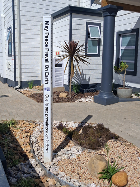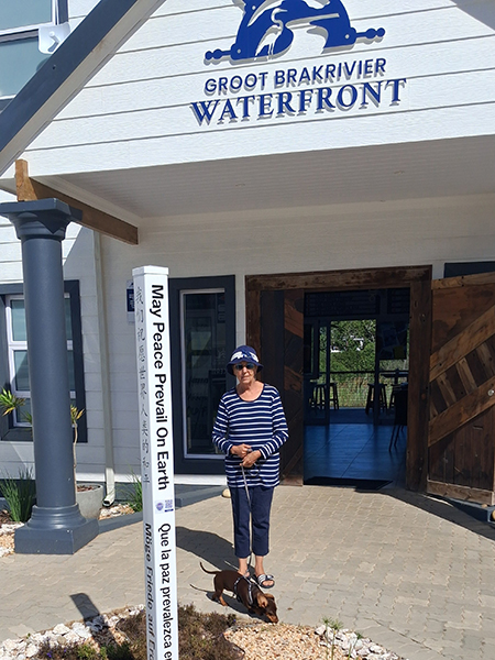Professor Elizabeth Smit, donated the Peace Pole, making it Garden route’s first Peace Pole, located at the entrance to the Waterfront.