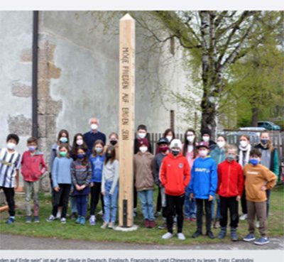 Montessori Students build first Peace Pole in Town. Innsbruck, Austria