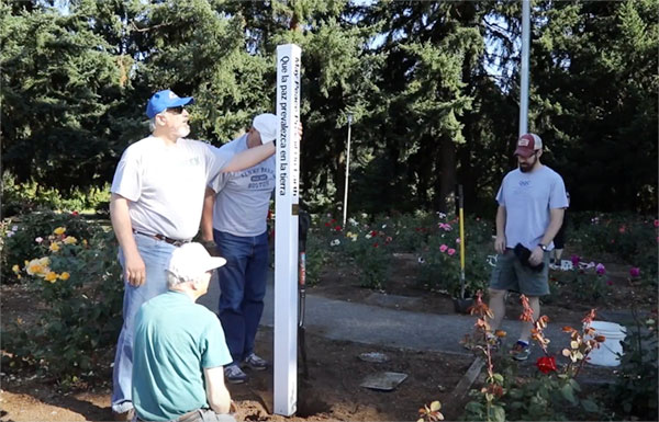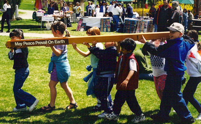 Various items may be planted along with your Peace Pole. A dedication plaque is particularly appropriate for Peace Poles in public places, so that everyone will know what your Pole stands for. Plan a re-dedication ceremony for the following year.
