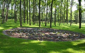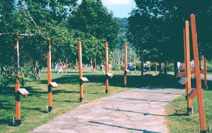 The Peace Path, a slated and winding Path lined with Peace Poles on both sides, representing each of the 193 U.N. member nations in the world.